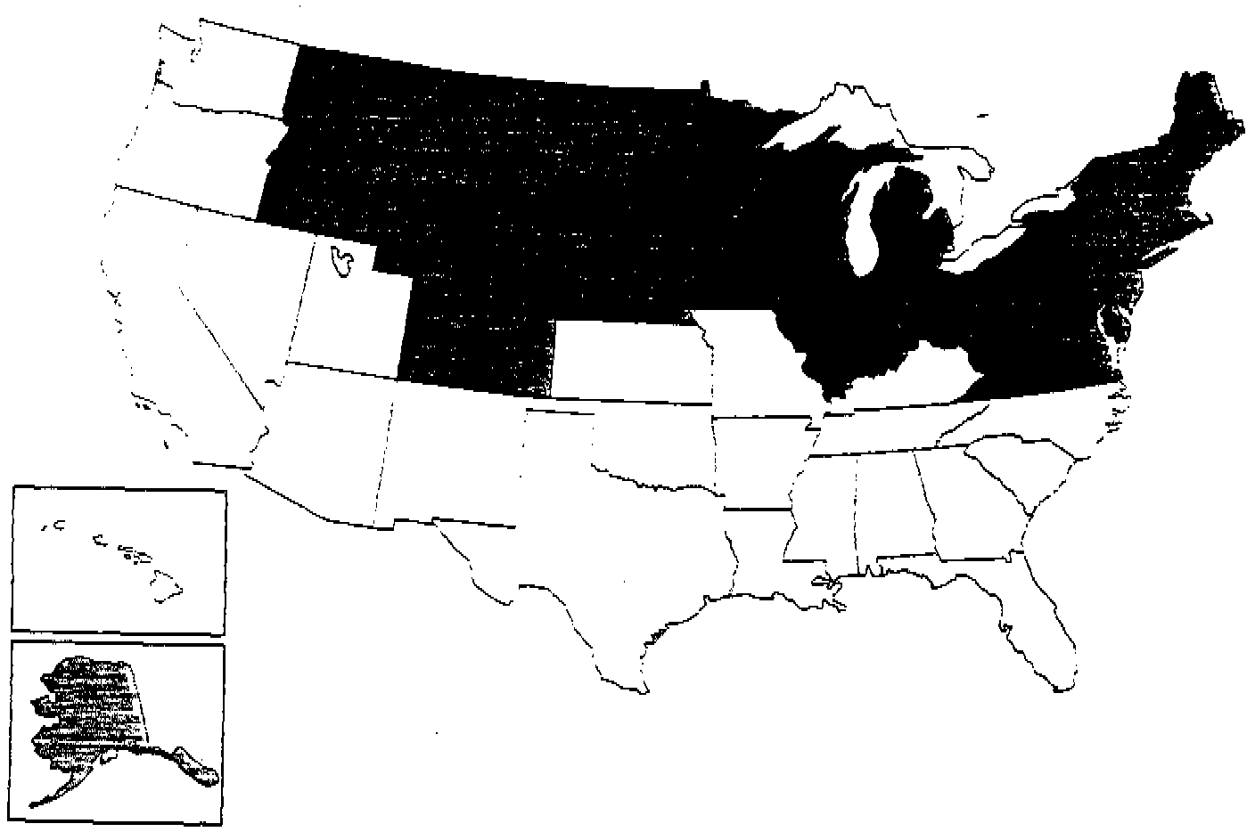 Only '95 MY Range Rover Classics, '94 and '95 MY Discoverys, and '95 MY Defender 90's that are located in the shaded areas on the map below are included in this Service Action.