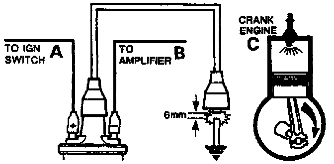 - Remove coil/distributor H.T. lead from distributor cover and hold approximately 6 mm (0.25 in) from the engine block, using suitable insulated pliers. Switch the ignition ON and operate the starter.