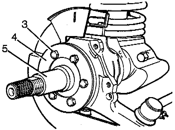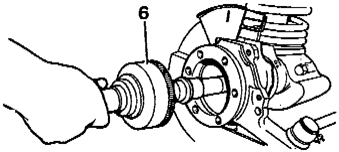 CAUTION: Ensure that constant velocity joint bearing journal is butted against thrust ring on stub axle before stub axle is secured.
