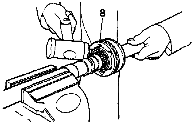 8. Using a soft mallet drive constant velocity joint from shaft.