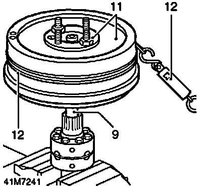 13. Tension cord and note load to turn figure recorded on spring balance when brake drum rotates.
