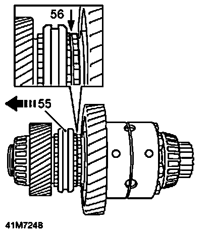 56. Using feeler gauges, determine clearance between low range gear and high/low hub: