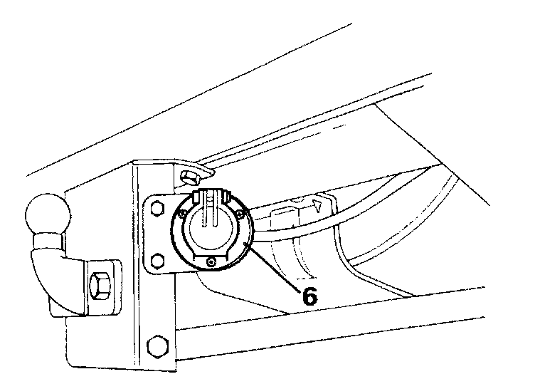 6. Remove the securing screws and withdraw the trailer socket from the towing hook mounting bracket.