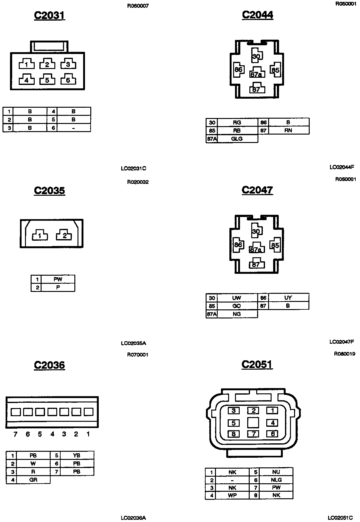 C2031, C2035, C2036, C2044, C2047, C2051: