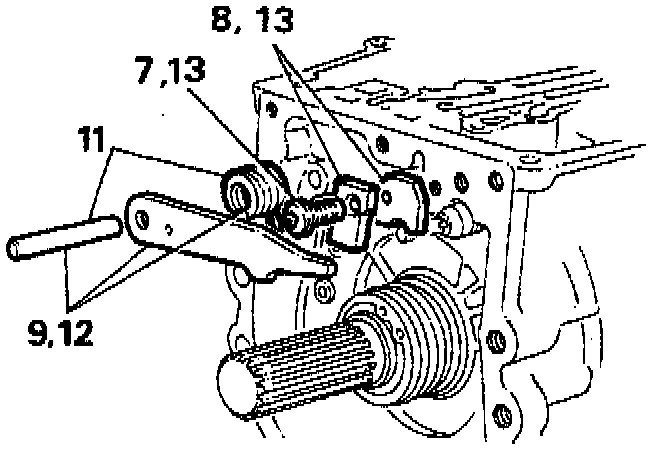 18. Install transfer gear selector housing, tighten three bolts to 25 Nm.