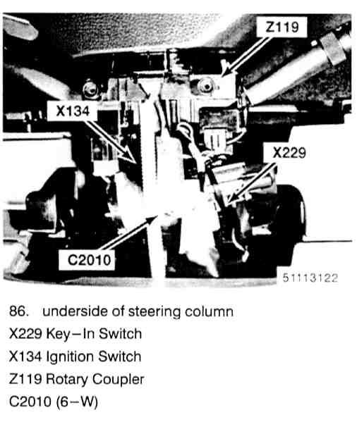 Top of steering column on Ignition Switch
