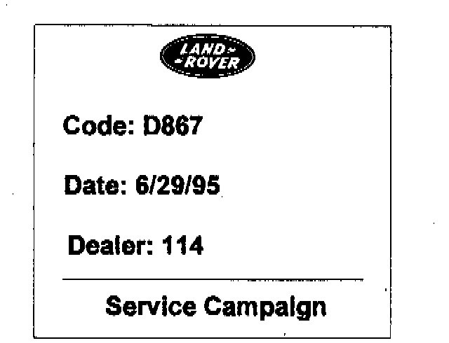 You may check the disposition of any vehicle using the Land Rover DCS terminal - Warranty Recall/Search screen.In order to prevent recall duplication, complete and install a Service Campaign label on the vertical portion of the radiator support panel near the vehicle emissions label and cover the label with a clear acrylic cover.