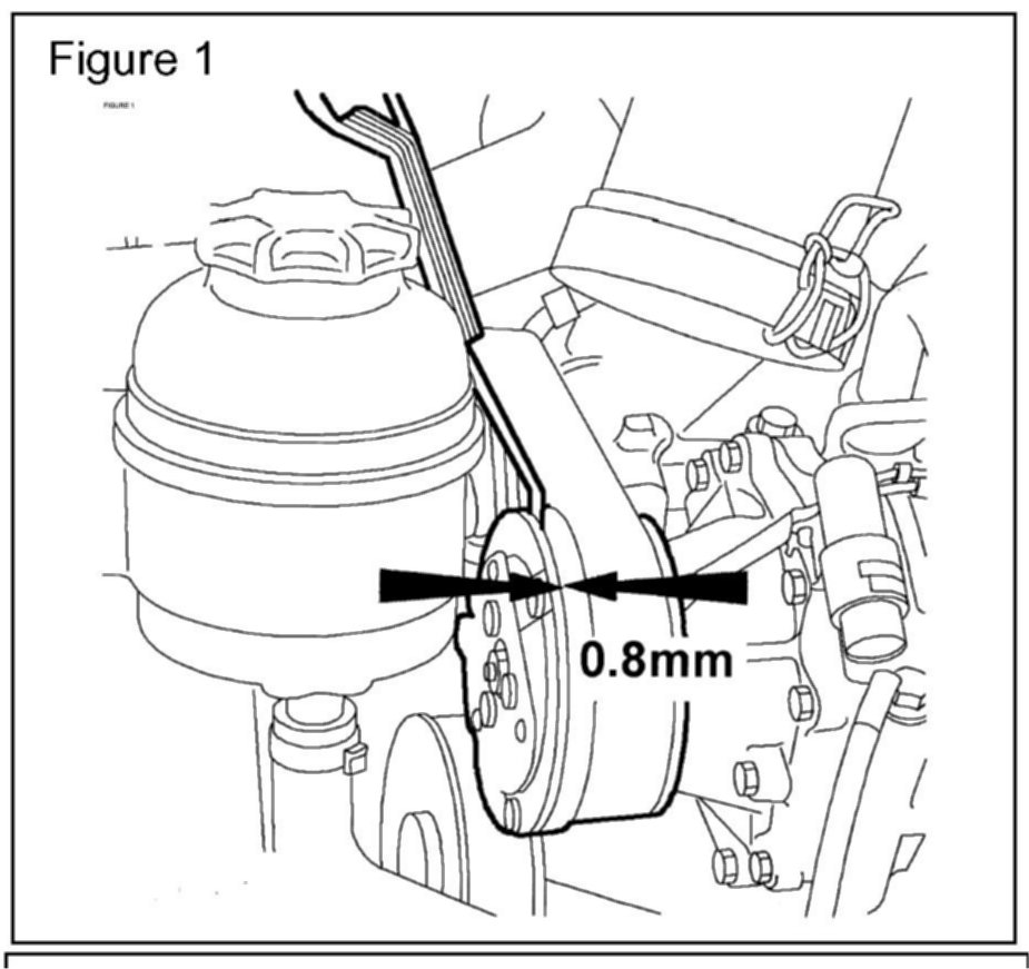 To ensure that sufficient voltage (11.5 VDC minimum) is always available for A/C clutch engagement, special wiring harnesses have been developed. Whenever a failed clutch is replaced or a clutch is adjusted, these modified harnesses should be installed. In addition, due to the possibility of damage to the compressor clutch, it will also be necessary to confirm the condition of this component by inspecting the clearance as described in the repair procedure in this bulletin.