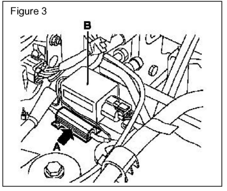 ^ Position resistor (Figure 3 - Position A) in the desired location next to crash sensor (Position B).