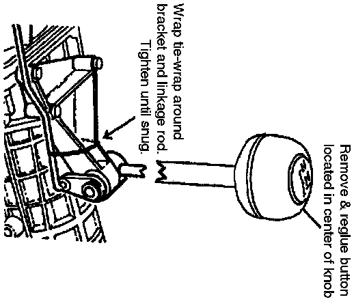 1. Referencing illustration, from under the vehicle install tie-wrap and tighten just enough to remove linkage freeplay.