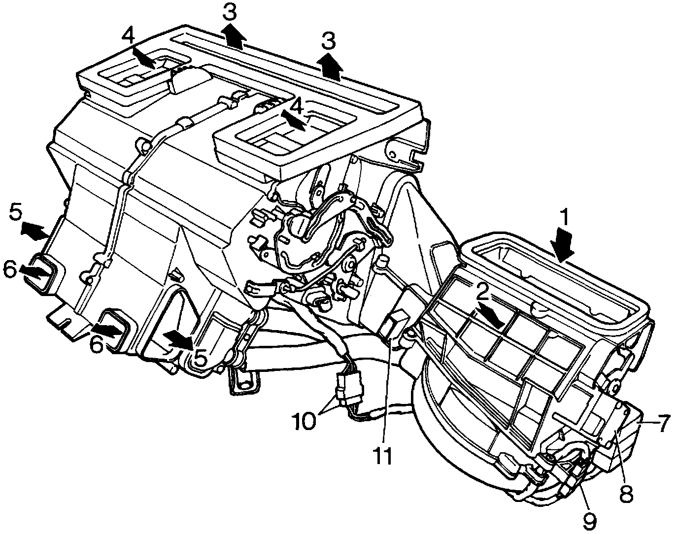 1 Fresh or recirculated air from blower unit