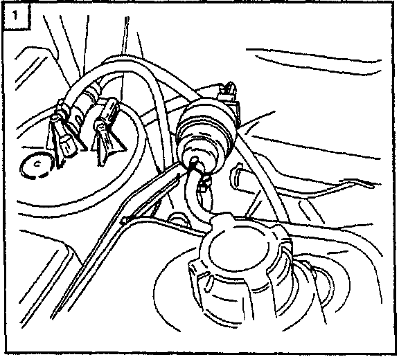 2. Check that none of the hoses have been bent in a manner that would restrict the flow of vapors to the canister. See figure 1 for the proper routing of the hoses in the vicinity of the canister.
