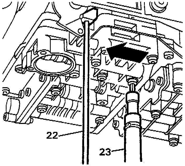 - Loosen securing bolt at bell housing and move dipstick aside.