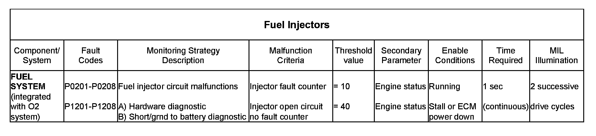 Injector circuit fault, cylinder 7 (Driving Cycle A)