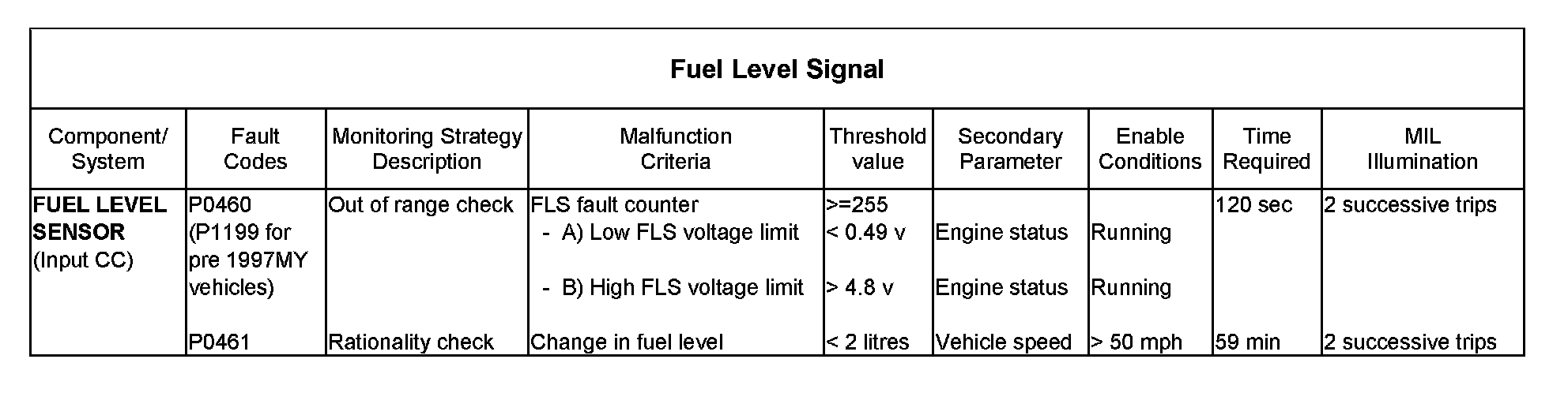 Fuel level sensor circuit fault (Driving Cycle A)