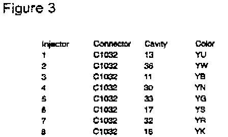 1. Using the chart determine the multi-plug cavities for the injector driver contacts (Figures 2 and 3).