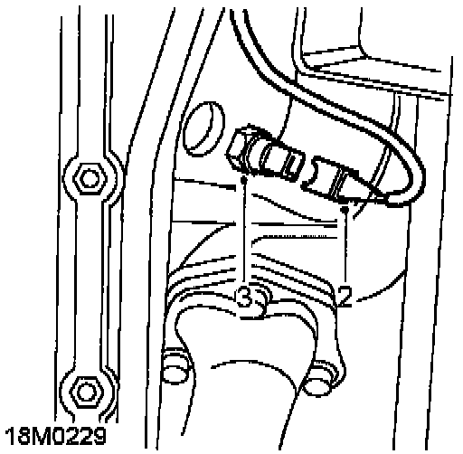 2. Depress spring clip and disconnect multiplug from LH knock sensor.
