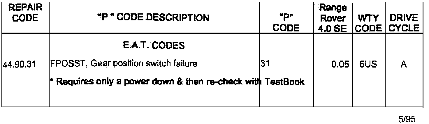 Since releasing Service Bulletin W95-002, we have found that most codes are only noted in the comment section of the warranty claim instead of being claimed as scheduled labor. In order for us to expedite the payment of claims and also retrieve valuable product information, it is essential that the "P" and "E.A.T." code labor operations be utilized as outlined, the DTCR is faxed (to 301 731 9814) and the drive cycle completed.