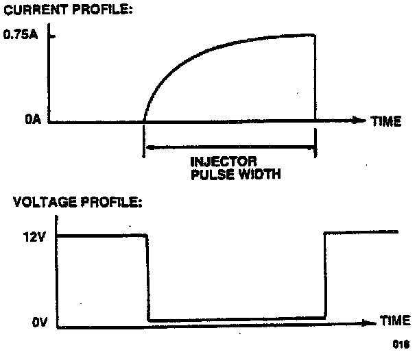 The length of time the injector is energized and delivering fuel is referred to as injector "pulse width. This varies between 1.5 to 10 milliseconds, depending on operating conditions. The longer the injector is energized, the greater the volume of fuel delivered. The ECM uses the duration of its ON signal to the injector (where it provides a ground for the injector circuit) to control fuel delivery to the cylinder.