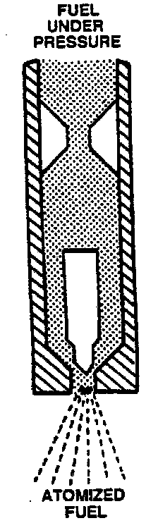 To further enhance the combustion process, the tip of the injector's needle valve is precision ground to a shape that produces a fine atomized fuel spray. This enables the fuel to vaporize faster and more completely than fuel introduced by a carburetor. The result is more complete and efficient combustion.