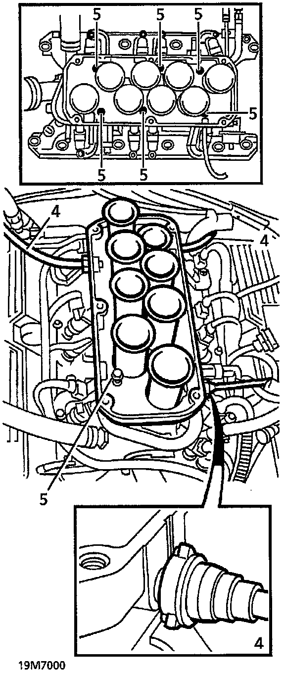 14. Release ignition coil bracket from inlet manifold studs. Place aside.