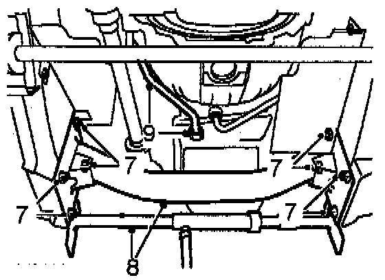 7. Remove 8 bolts securing chassis crossmember.