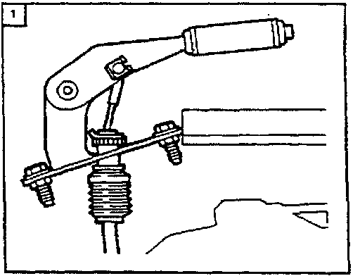 13. Remove clip and clevis pin holding cable to emergency brake lever (figure 1).