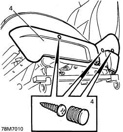 4. Remove 2 plugs from seat valance retaining screws. Remove 3 screws. Remove valance.