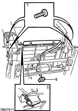 5. Remove 2 clips securing squab cover retainer to cushion frame. Release retainer.