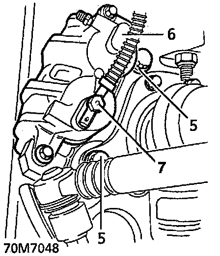 3. Remove banjo bolt (7) securing flexible hose to caliper. Discard sealing washers.