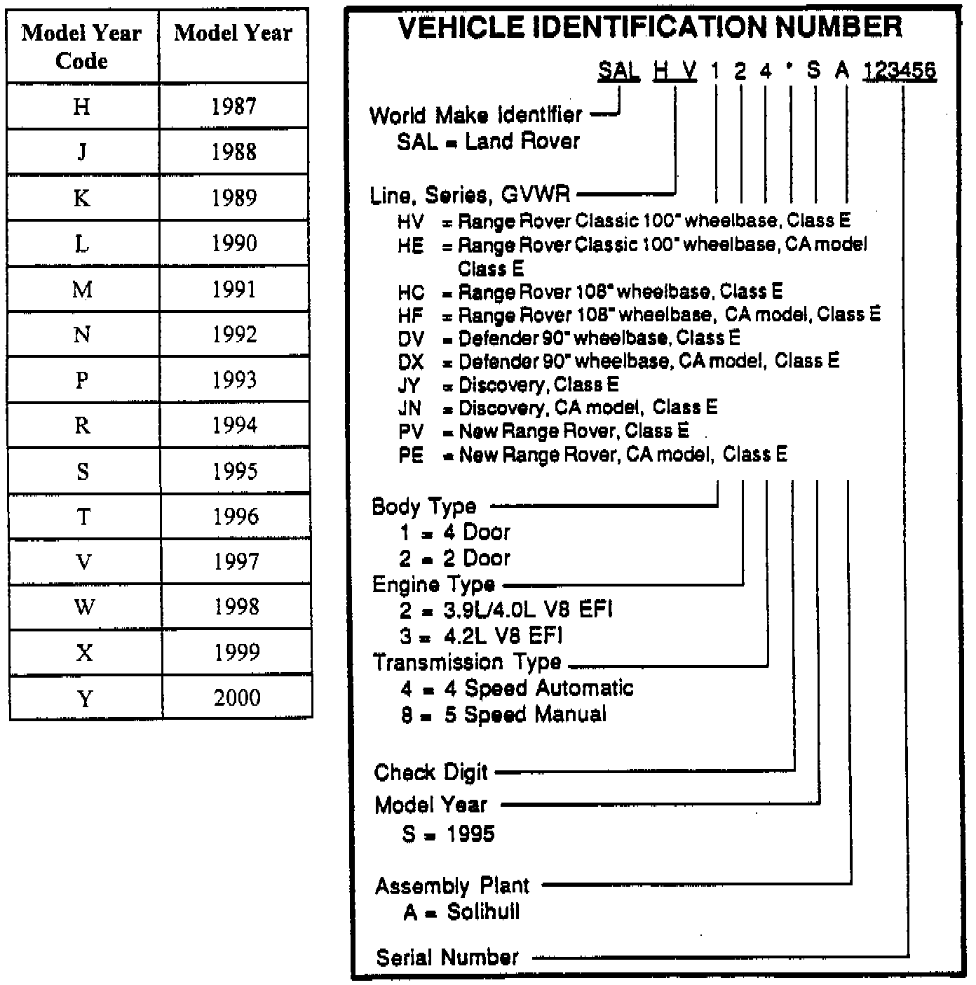 VEHICLE IDENTIFICATION NUMBER - FEDERAL (USA) CODEVIN Breakdown: