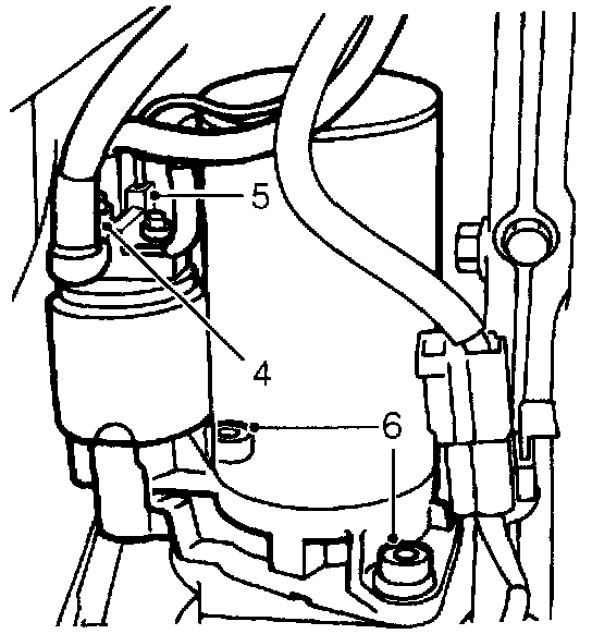 4. Remove nut securing 2 cables to starter solenoid and position cables aside.