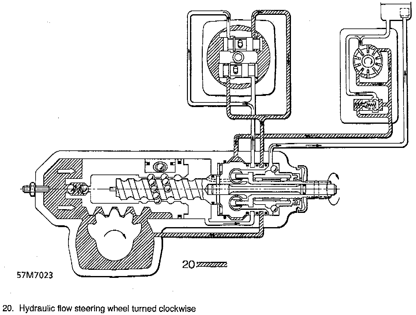 The illustration above shows hydraulic flow when steering wheel is turned clockwise.
