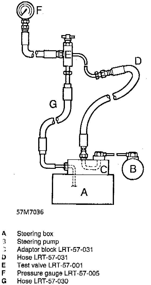 1. A hydraulic pressure gauge and adaptor is used to test the power steering system.