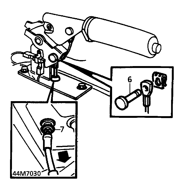 6. Release Handbrake. Remove Handbrake cable clevis pin.