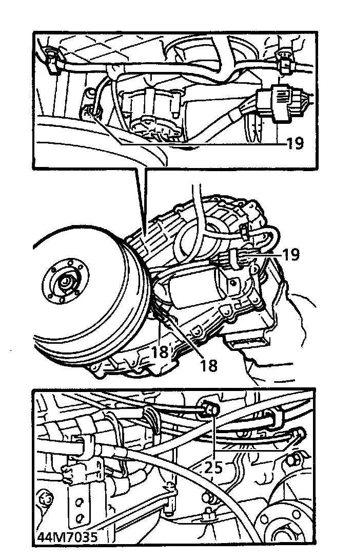20. Disconnect multiplugs from gear selection position switch and gearbox speed sensor.