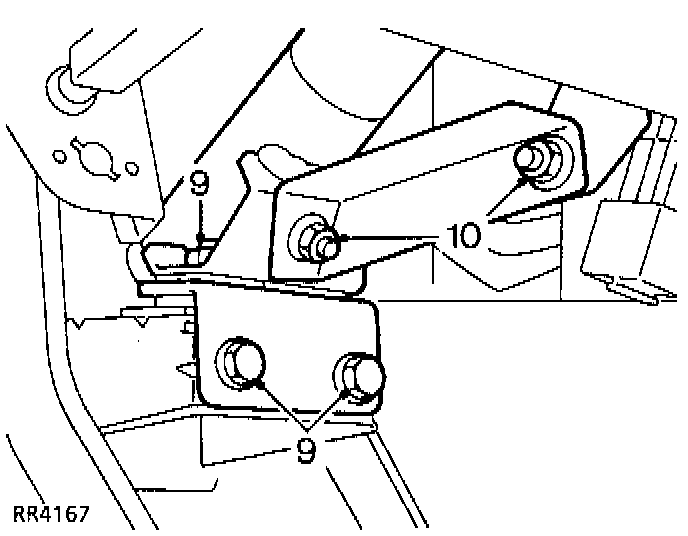 10. Remove 2 nuts (10) securing lower mounting steady bracket, remove bracket.