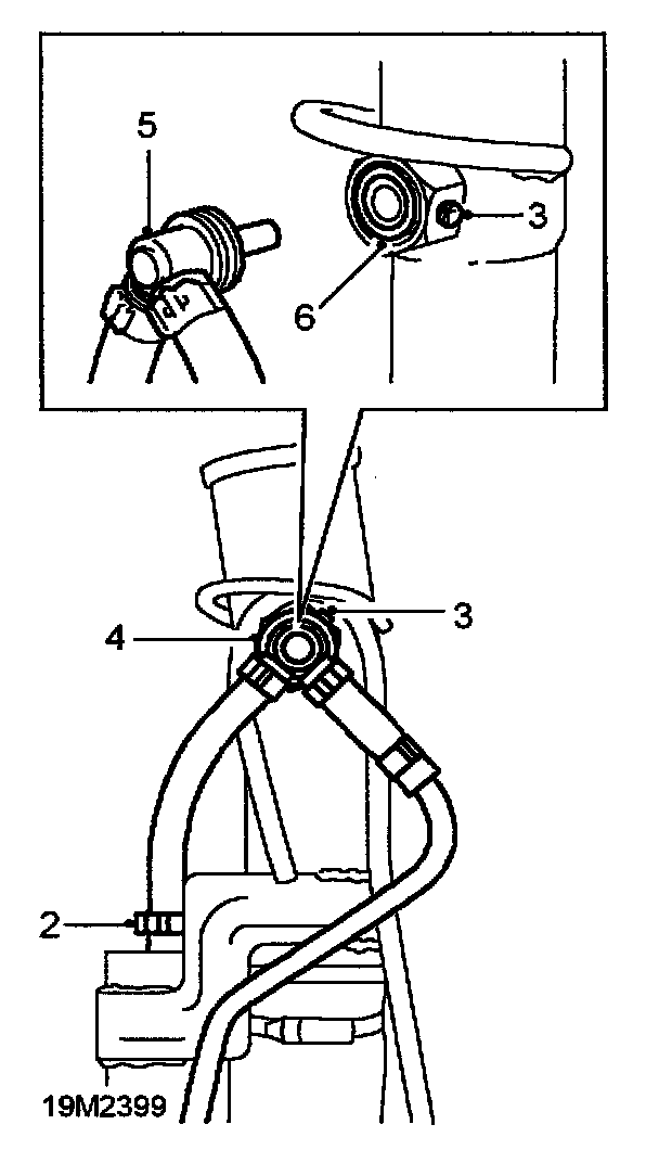 2. Release the cobra clip securing the hose to the liquid/vapour separator and disconnect the hose.