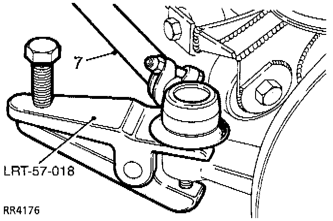 5. Disconnect drag link ball joint at swivel housing arm, using extractor tool No. LRT-57-018.