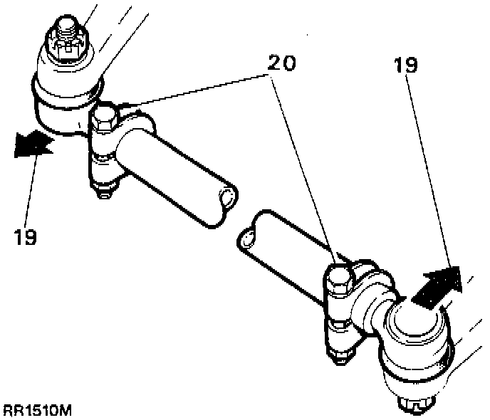 6. Tap ball joints in direction shown (19), so both pins are in same angular plane.
