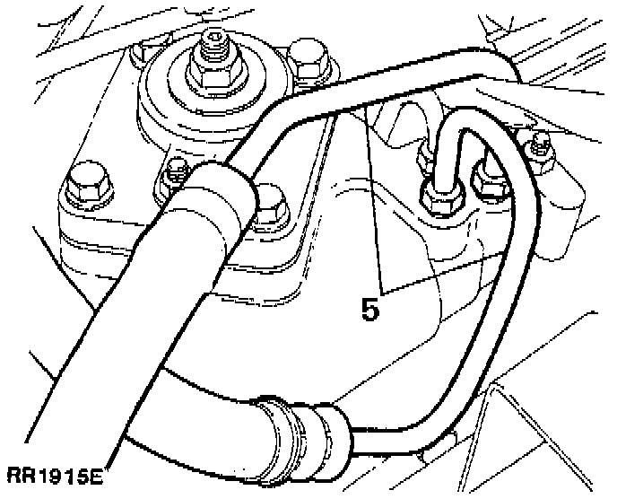 5. Disconnect feed and return pipes (5) from steering box.