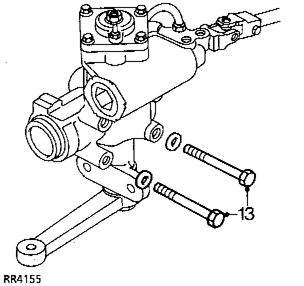 13. Remove bolts (134) securing power steering box to chassis side member.