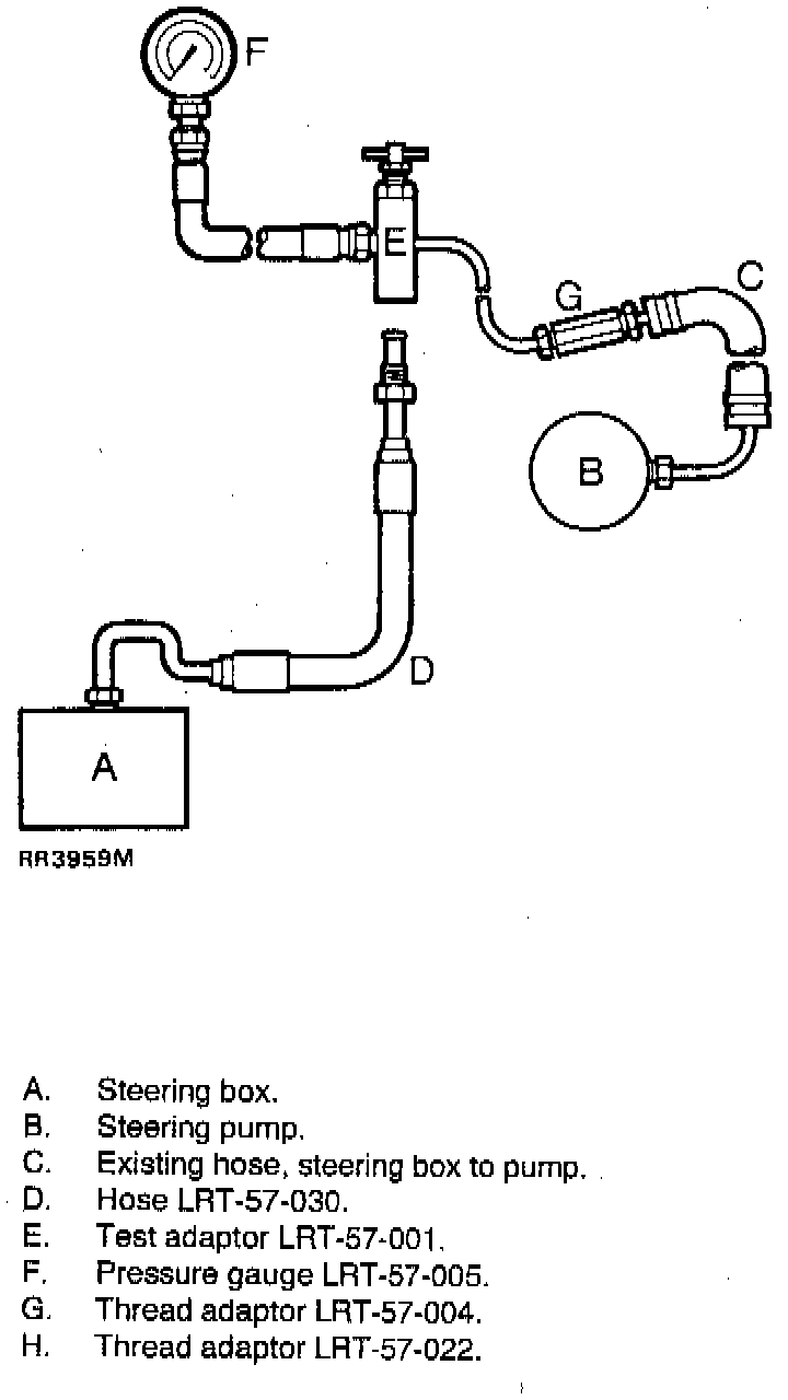 1. A suitable hydraulic pressure gauge and test adapter is used to test power steering system.