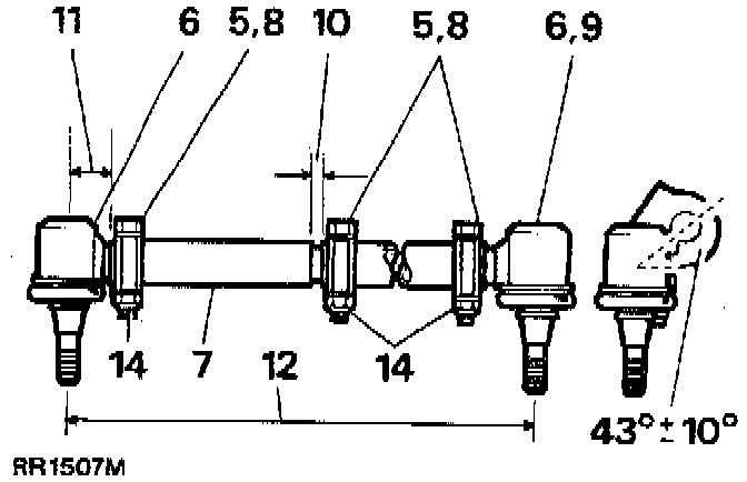 12. Track rod effective length of 1 230.0 mm (12) is subject to adjustment during wheel alignment check.