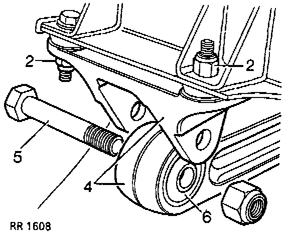 NOTE: Apply pressure to outer edge of bushing (6), and not rubber inner.
