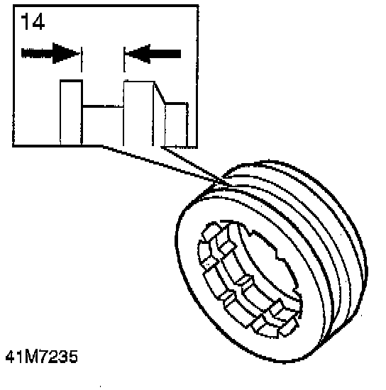 14. Check dog clutch selector fork groove width: