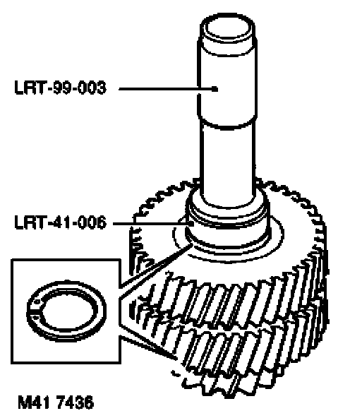2. Fit new circlips and using tool LRT-99-003 and LRT-41-006 fit bearing tracks to intermediate gear, ensuring that the bearing tracks are fully seated against the circlips.