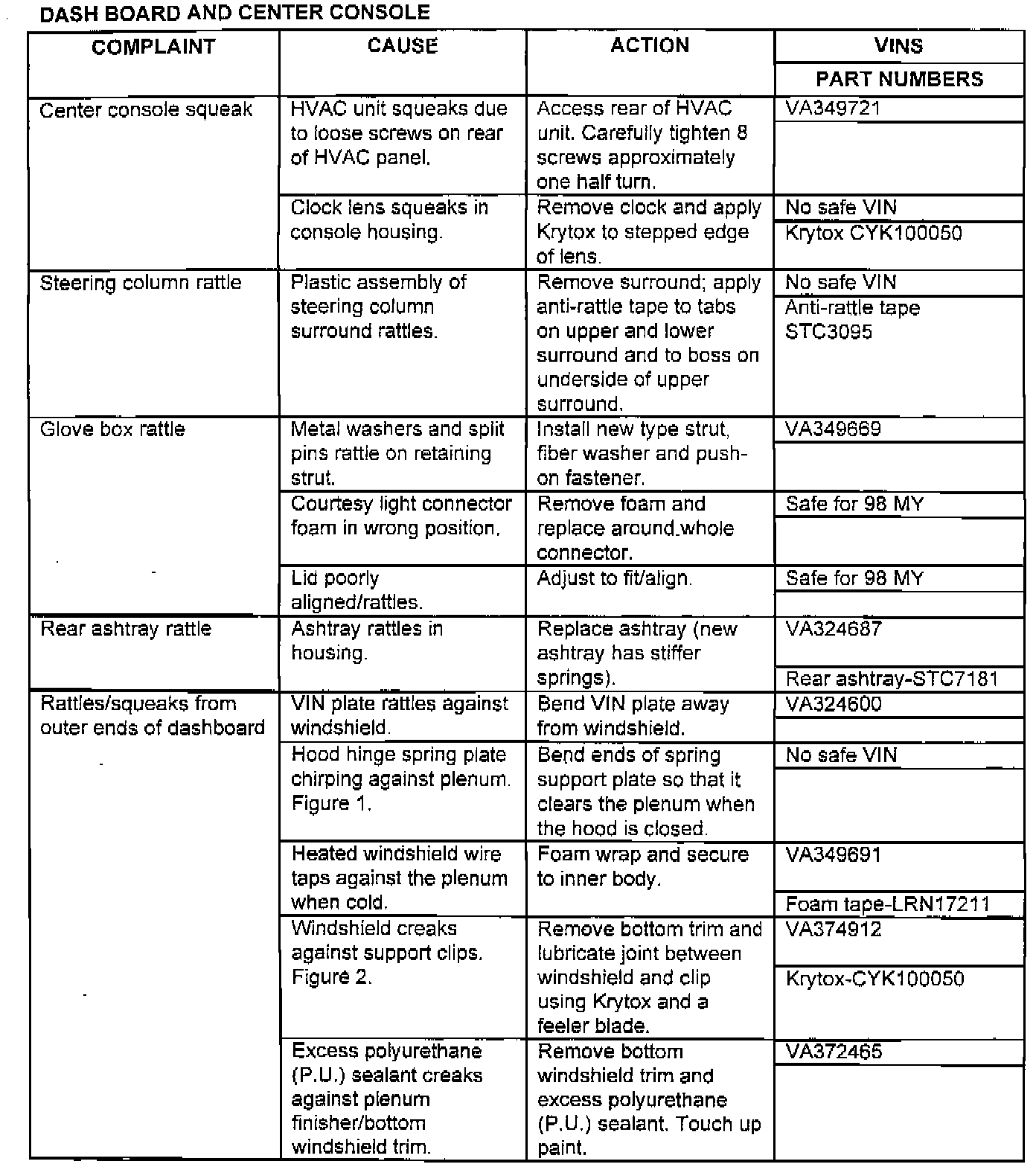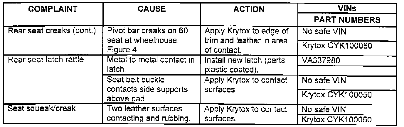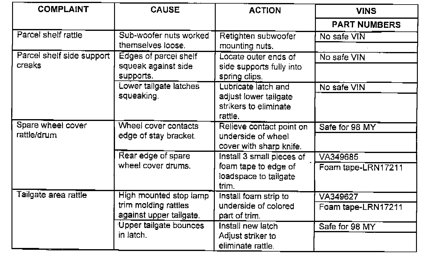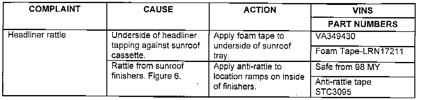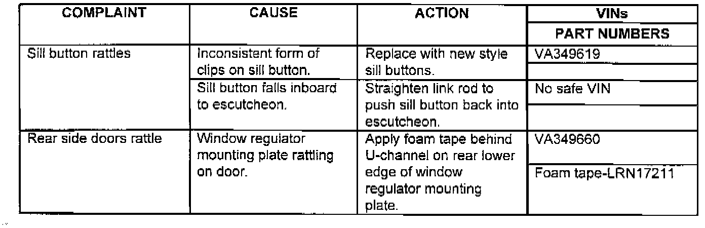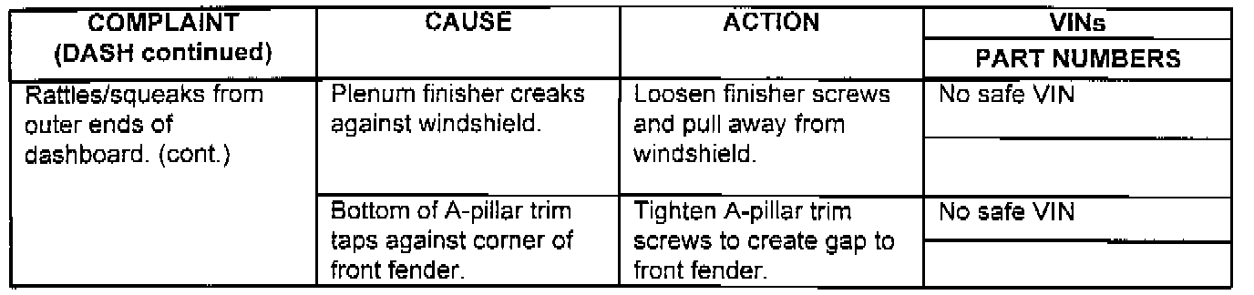 CUSTOMER COMPLAINTS OF SQUEAKS AND RATTLES