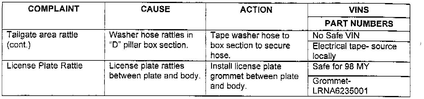 The repairs outlined in this TIB are to be performed to resolve customer complaint of the symptoms described.