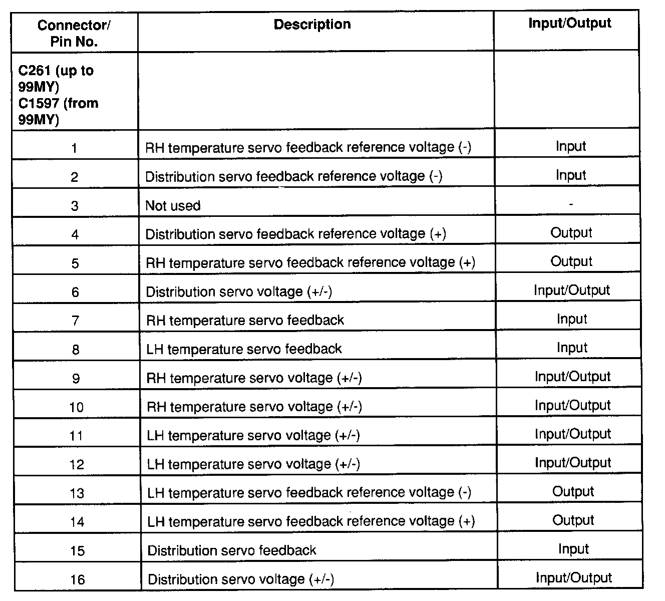 The two temperature servos and the distribution servo each incorporate a feedback potentiometer which provides the Heater ECU with a flap position signal to enable accurate control of air temperature and distribution.